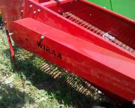 Картофелекопалка 1-рядная WIRAX Польского производства предназначена для выкапывания картофеля. Надежная в работе, удобная в обслуживании, несложная по конструкции машина. Картофелекопатель WIRAX предназначен для выкапывания картофеля, отделения клубней от почвы и укладывания их на поверхность поля для последующей подборки. Картофелекопатель обеспечивает возможность уборки при любых климатических условиях, а также в самых неблагоприятных погодных условиях благодаря ряду оригинальных решений: комбинированному встряхивателю полотна основного элеватора от принудительных и пассивных встряхивателей; расположению в зоне принудительных встряхиваний удерживающей гребенки; оптимальной геометрии подкапывающих лемехов